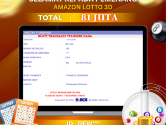DEWALIVE JACKPOT TOGEL DI AMAZON LOTTO 3D Rp 81.000.000,- LUNAS