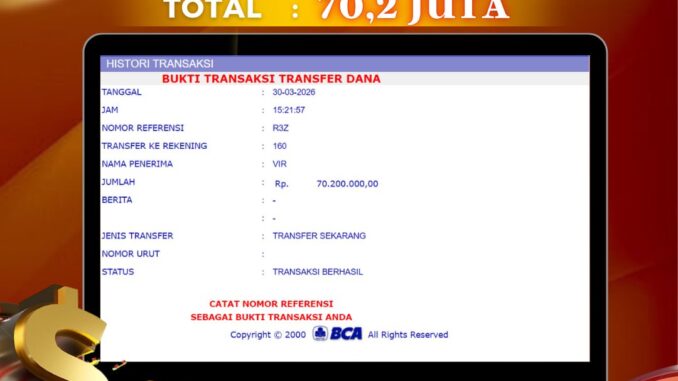 Bukti transfer yang dapat anda lihat adalah bukti SAH / VALID yang langsung di dapatkan melalui bukti transaksi dari Bank yang digunakan untuk pengiriman dana pada rekening pemilik user id. Terima kasih kami sampaikan kepada para pengguna setia DEWALIVE yang telah menggunakan situs kami, sebagai Bandar Terpercaya yang pastinya membayar semua kemenangan member hingga lunas. Apakah DEWALIVE PENIPU ? Reputasi “DEWALIVE TERPERCAYA” sudah sangat melekat.