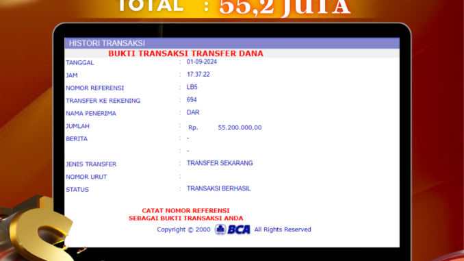 Bukti transfer yang dapat anda lihat adalah bukti SAH / VALID yang langsung di dapatkan melalui bukti transaksi dari Bank yang digunakan untuk pengiriman dana pada rekening pemilik user id. Terima kasih kami sampaikan kepada para pengguna setia DEWALIVE yang telah menggunakan situs kami, sebagai Bandar Terpercaya yang pastinya membayar semua kemenangan member hingga lunas. Apakah DEWALIVE PENIPU ? Reputasi “DEWALIVE TERPERCAYA” sudah sangat melekat.